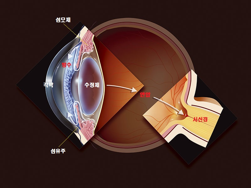 더불어 눈의 압력인 안압을 일정하게 유지하는 역할도 하기 때문에 눈이 너무 말랑말랑하게도, 너무 단단하게 되지 않도록 하여 정상적인 안구의 형태를 유지하도록 도와줍니다.이러한 방수가 너무 많이 만들어지거나 혹은 배출이 정상적으로 되지 않으면 안압이 올라가게 됩니다.