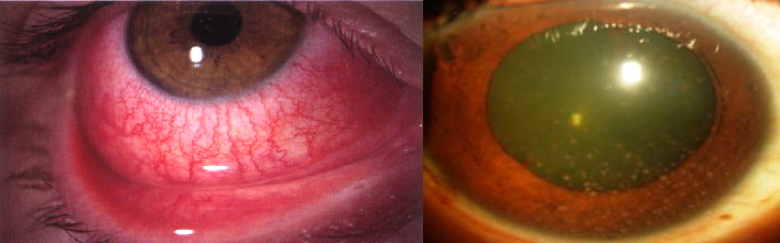통증, 충혈과 눈부심이 있고 시력이 떨어지며 급성으로 나타나고 재발이 잘됩니다. 의사가 처방한 안약이나 먹는 약을 열심히 투여하여야 합병증을 최소화 할 수 있습니다.