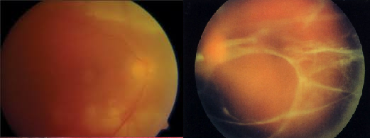 약간의 눈부심과 다양한 시력장애가 있으며 눈의 통증이나 충혈이 없습니다. 이 염증은 치료 후 생기는 흉터가 망막에 남을 수 있습니다. 망막의 중심부위가 침범되지 않을 경우 시력은 괜찮은 편이나 염증이 오래되면 시력이 많이 떨어집니다.
