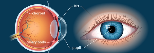 포도막은 안내 조직 중 앞쪽부터 홍채, 모양체, 맥락막 순서로 구성되어 있는 혈관이 풍부한 조직으로 혈류량이 단위면적당 가장 많아 외부의 균이나 염증을 유발하는 항원단백질이 안구내로 들어와서 염증이 생기는 질환을 말합니다. 이러한 염증에 의하여 주변의 망막, 유리체, 공막은 물론 수정체, 각막 등 눈의 중요한 부분에 손상을 입히므로 시력저하 내지는 실명까지도 초래할 수 있습니다.