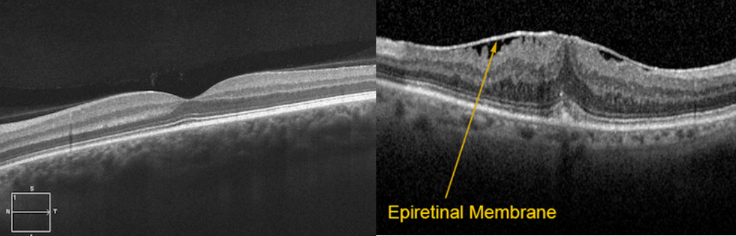 망막앞막의 두께가 매우 얇거나, 막의 위치가 황반 중심을 벗어나 있는 경우 대부분 증상이 없거나 정상에 가까운 시력을 보입니다. 대다수의 망막앞막은 시간이 지나도 해부학적으로 변하지 않고, 시력도 오랫동안 안정적으로 유지되는 경향이 있습니다. 그러나 망막앞막이 매우 두꺼운 경우, 망막앞막의 견인에 의해 망막두께가 증가하는 경우, 심한 변시증을 호소하거나 시력저하가 심한 경우 등에서 수술적 치료를 고려하게 됩니다.