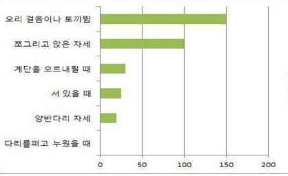 2. 자세로 인한 무릎 관절에 걸리는 부담은?