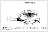 눈물점에 특수 주사기를 꽂아서 식염수가 코속으로 나오는지 확인하거나 더듬자(probe)으로 어느 부분이 막혀있는지 검사합니다.