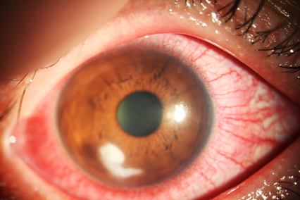 세균에 의한 각막에 염증으로 적절한 항생제 치료가 필요하며, 시력저하나 각막혼탁 등의 후유증이 남을 수 있는 질환입니다. 폐렴구균, 녹농균, 쌍간균 등이 주된 원인입니다. 장년 이후에 많으며 각막에 외부 요인에 의한 외상이나 렌즈 착용 등이 원인이 되는데, 환자 자신은 외상을 잘 느끼지 못하는 경우도 많습니다. 손상된 각막에 세균이 침범한지 24-48시간에 발병하여 각막에 실질을 침범하며 각막 궤양이 형성됩니다. 심한 통증과 시력 장애를 나타나는 경우가 많습니다. 쌍간균의 경우는 알콜중독, 당뇨병, 기타 면역억제성 질환에 의해 신체가 많이 약해진 사람에게서 잘 발생합니다.