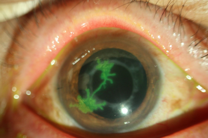 가지모양 각막상피염 (플루오레신 염색후 소견)
